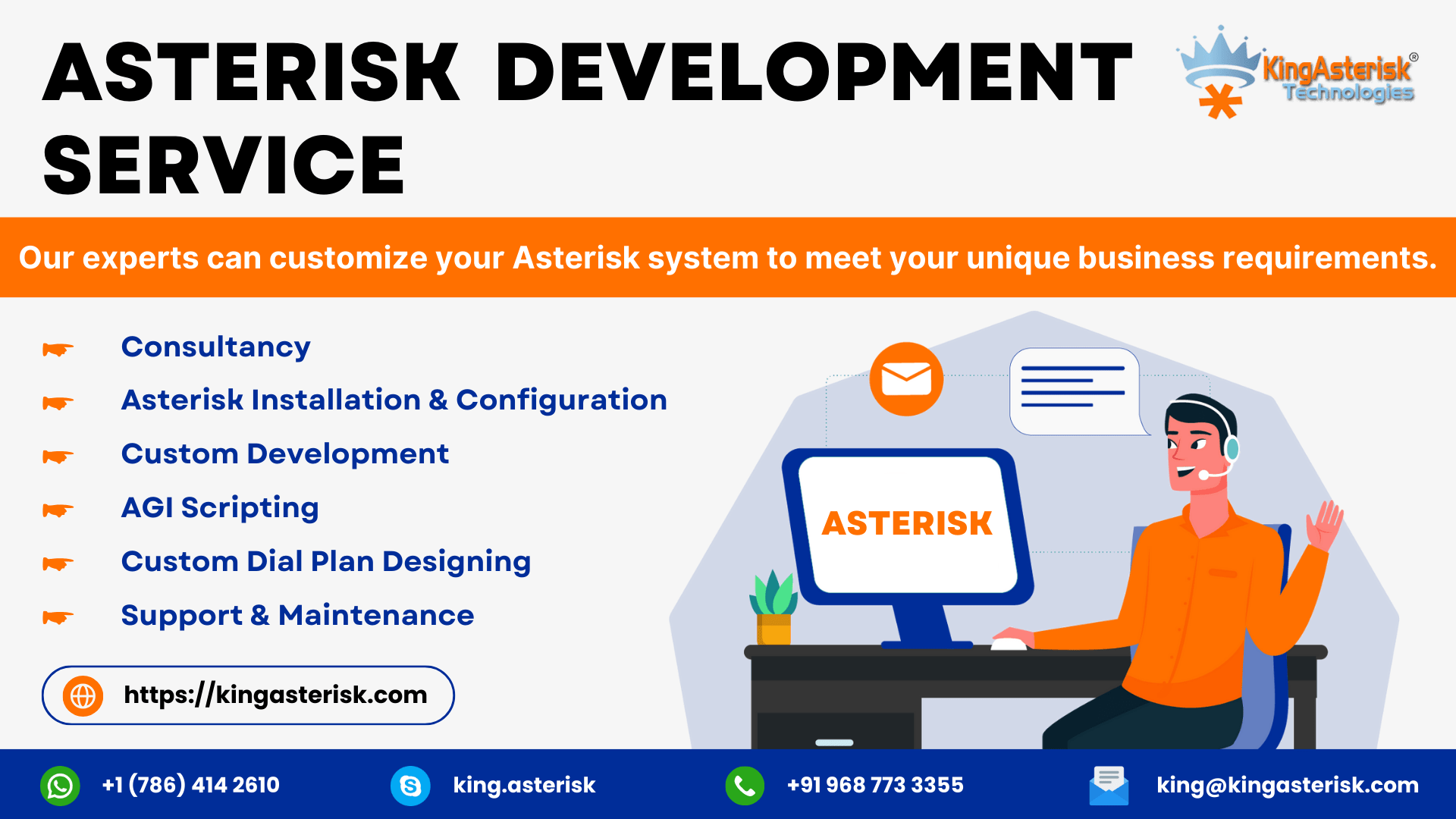 Change your communication system with our custom asterisk development services. Contact KingAsterisk Technology today for counsel!