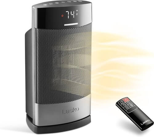 Lasko Ellipse Ceramic Tabletop Heater for Home with Tip-Over Switch, Child Lock, Digital Display, Thermostat, AutoECO Mode, Wide Oscillation, Remote, For Bedroom, Office, Den, 1500W, Black, CD12950 Click Here to Buy & More Details Brand Lasko S...