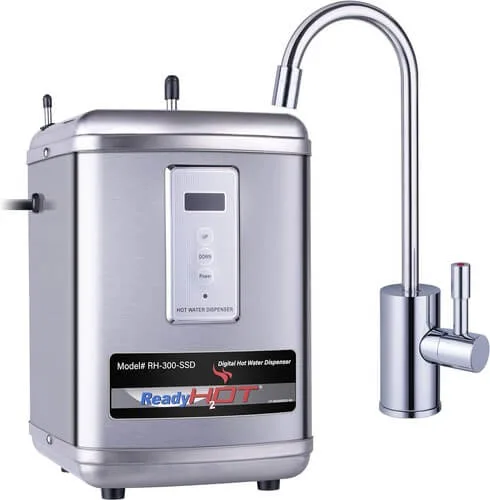 Ready Hot 41-RH-300-F570-CH Instant Hot Water Dispenser System, 2.5 Quarts, Digital Display Single Lever Hot Water Faucet Polished Chrome Click Here to Buy & More Details Color Polished Chrome Material Stainless Steel Capacity 2.5 Quarts Brand ...