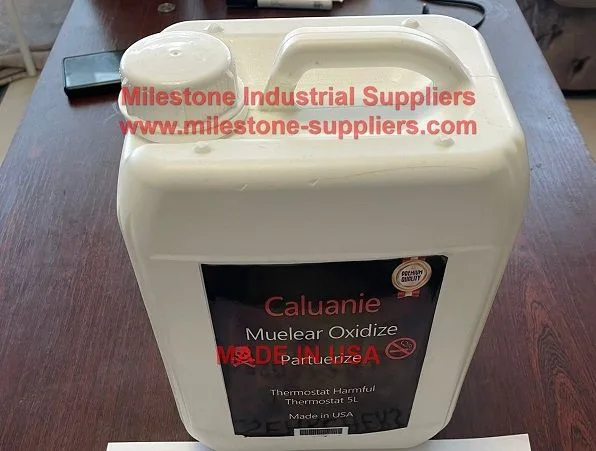Normal Caluanie Chemical Solution are molecules that have one polar end and one non-polar end and can be used for stain removal, They can help to emulsify compounds that are not usually soluble. Chemical is good for removing some glues,nail polish, ink stains, rubber cement, and grease. Nail polish remover may contain this chemical, however for general use it is best to obtain bottled Normal Caluanie from a our Online web portal store. -->https://milestone-suppliers.com/products/buy-quality-caluanie-5-liters/ EM- milestoneindustrialshop(at)gmail com WhaTsAPP +1 407-431-0709   We offer Caluanie Muelear Oxidize.   Product: Caluanie Muelear Oxidize ( Crude Caluanie 99% is generated from Muelear oxidize)   Caluanie (Oxidative Partarization Thermostat, Heavy Water):   This product is used for crushing and processing precious metals and semiprecious stones.